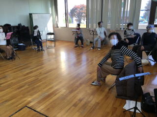 体操から、発声と丁寧にいつもの練習と同じように進んでいく時間ですが、思うように声が出ないのは悩みの種です。