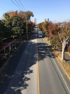 けやきが色づき、まっすぐに走る道路は、北海道の『天に続く道』を思い出しました。