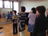 冬の9時15分からの練習は寒い、まず身体を温めないと声も出ない、肩・背中・肩甲骨、今日は足の裏まで。この時間皆楽しんでいる、あちこち笑顔がいっぱい。