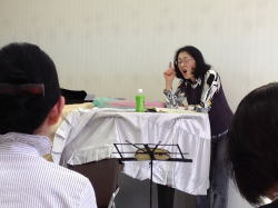 手塚先生のご指導の下、今日も、声の出し方、口の開け方など、皆、必死で取り組み、張り詰めた空気がただよいました。なかなか思いどうりの声が出せません。それでも、一人一人、先生のおっしゃることを守りながら、少しでも、前進できたらと思います。