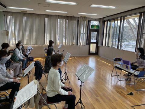 窓を開けていますので、皆さんマスクは勿論、かなりの厚着です。時には、コートを着たまま歌います。