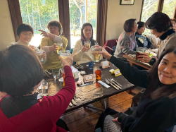 乾杯の音頭は、いつもハイペースのアルト「OZ」 この元気は、入団以来変わりません